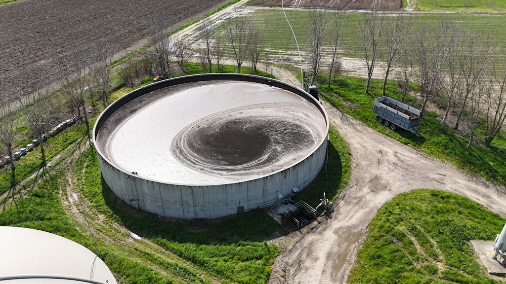 Nel nostro impianto, il gas generato dalla decomposizione della matrice organica ad opera delle diverse colture batteriche, risale lungo la colonna di liquido e si accumula nella parte superiore del digestore all’interno della membrana gasometrica. Questo sistema di accumulo garantisce un flusso costante di gas al cogeneratore posto a valle, permettendoci di gestire in modo efficiente le discontinuità di produzione del processo biologico.