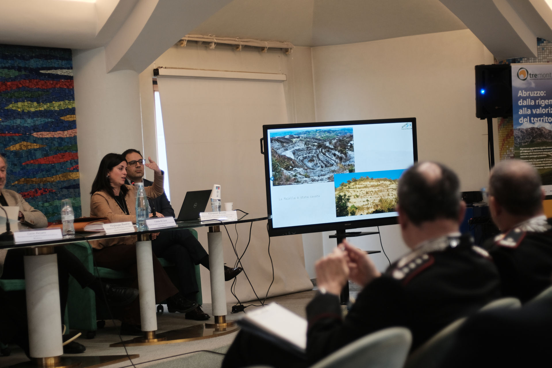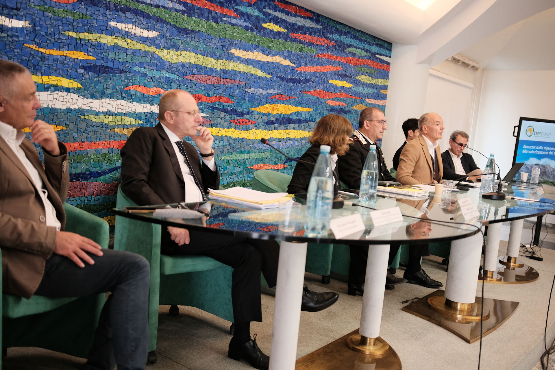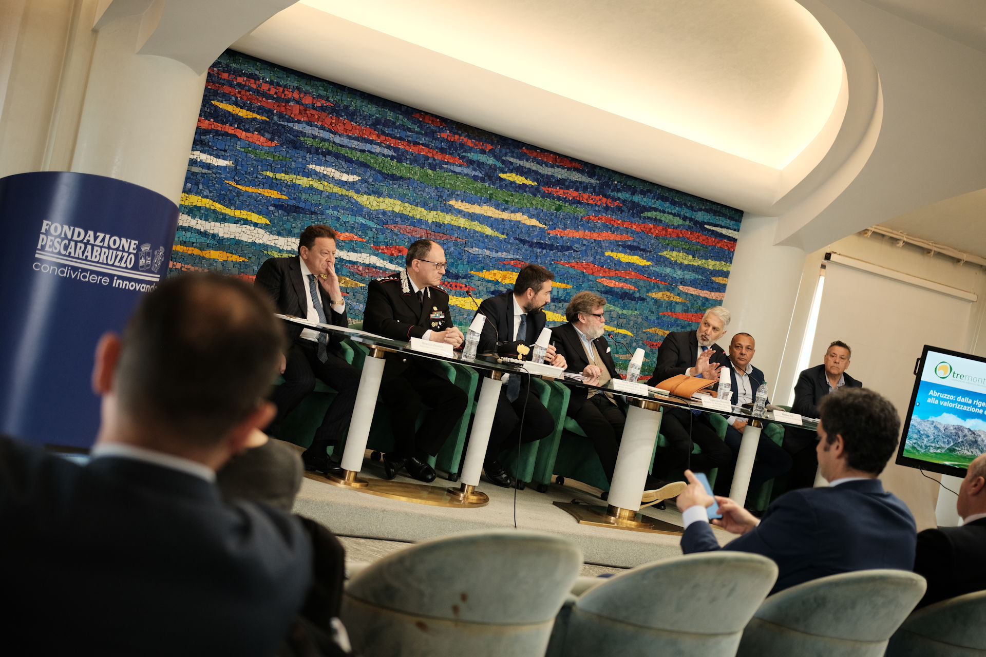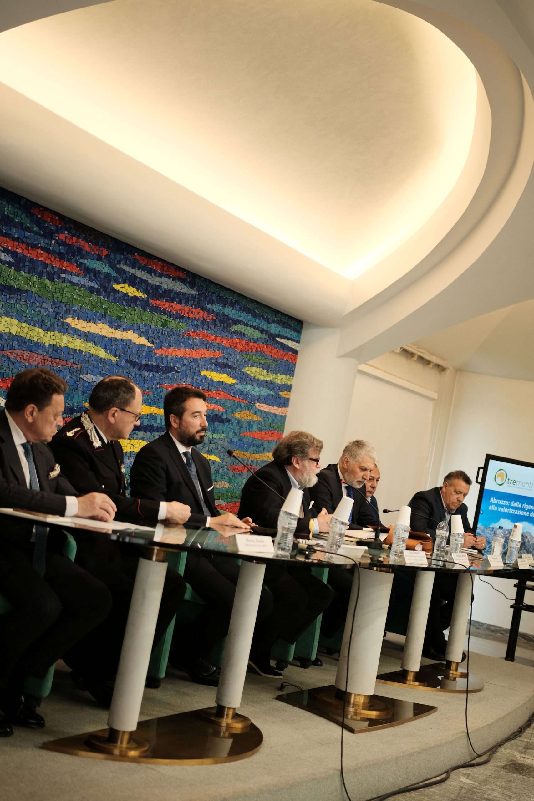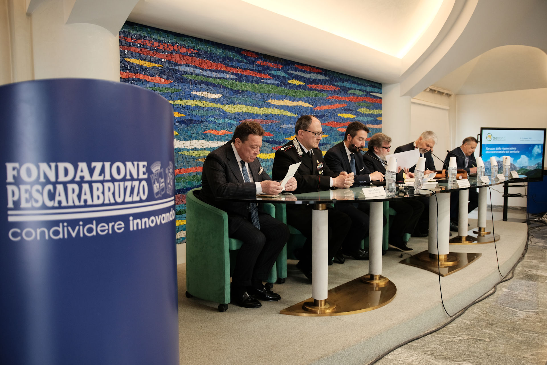 Nicola Mattoscio Presidente Fondazione Pescara; Piergiuseppe Biandrino Presidente Tre Monti S.r.l., Vicepresidente Esecutivo Edison S.p.A.; Nicola Campitelli Delegato del Presidente della Regione Abruzzo, Assessore Urbanistica e Territorio, Energia e Rifiuti; Antonio Romano Delegato del Presidente della Provincia di Pescara. Consigliere della Provincia di Pescara; Salvatore Lagatta Sindaco del Comune di Bussi sul Tirino; Guido Di Bartolomeo Sindaco del Comune di Bolognano; Maurizio Dionisio Direttore Generale ARTA; Giampiero Costantini Comandante Regione Carabinieri Forestale Abruzzo, sono stati protagonisti nei loro interventi.