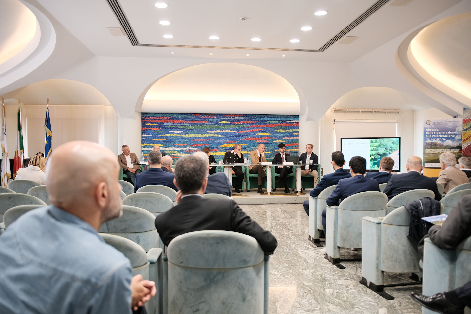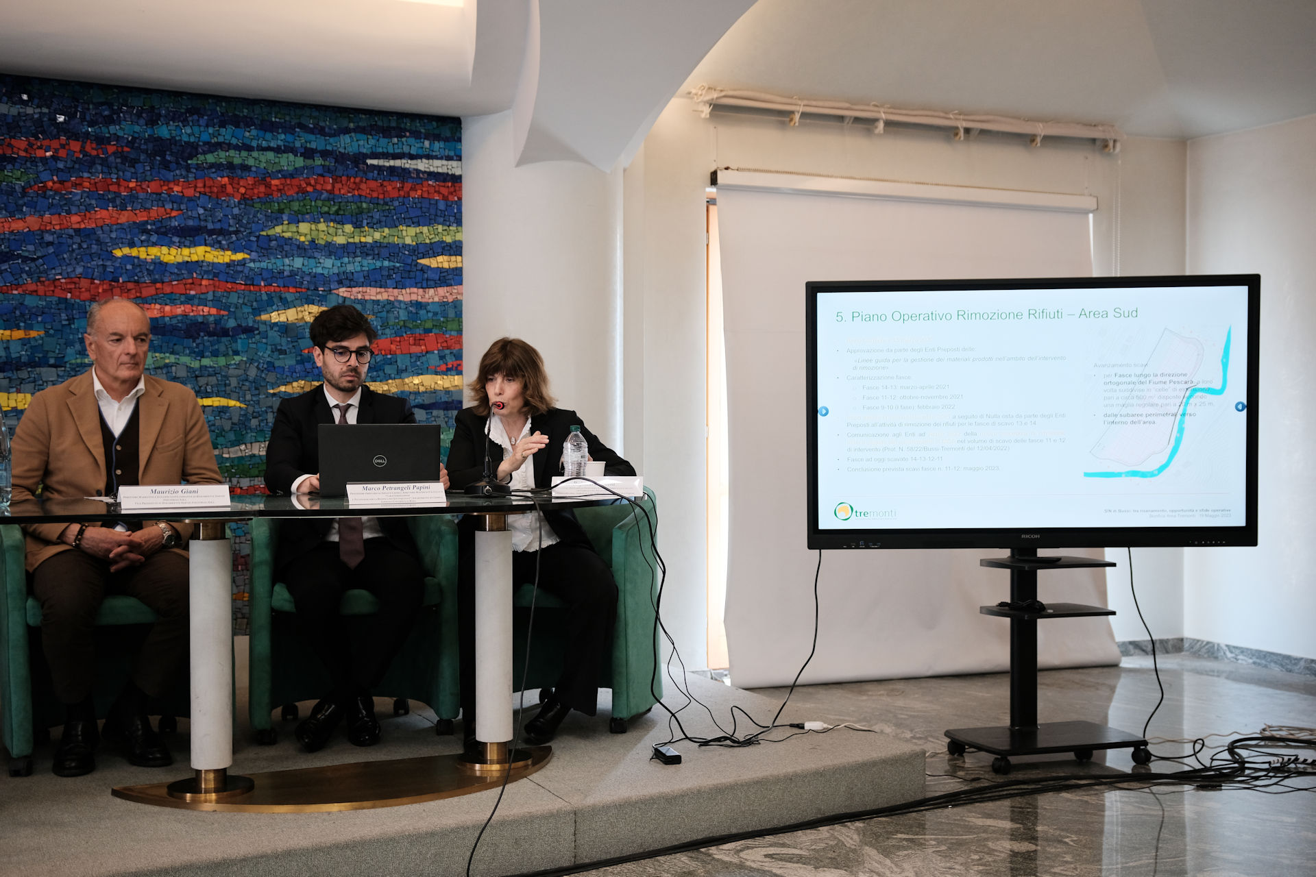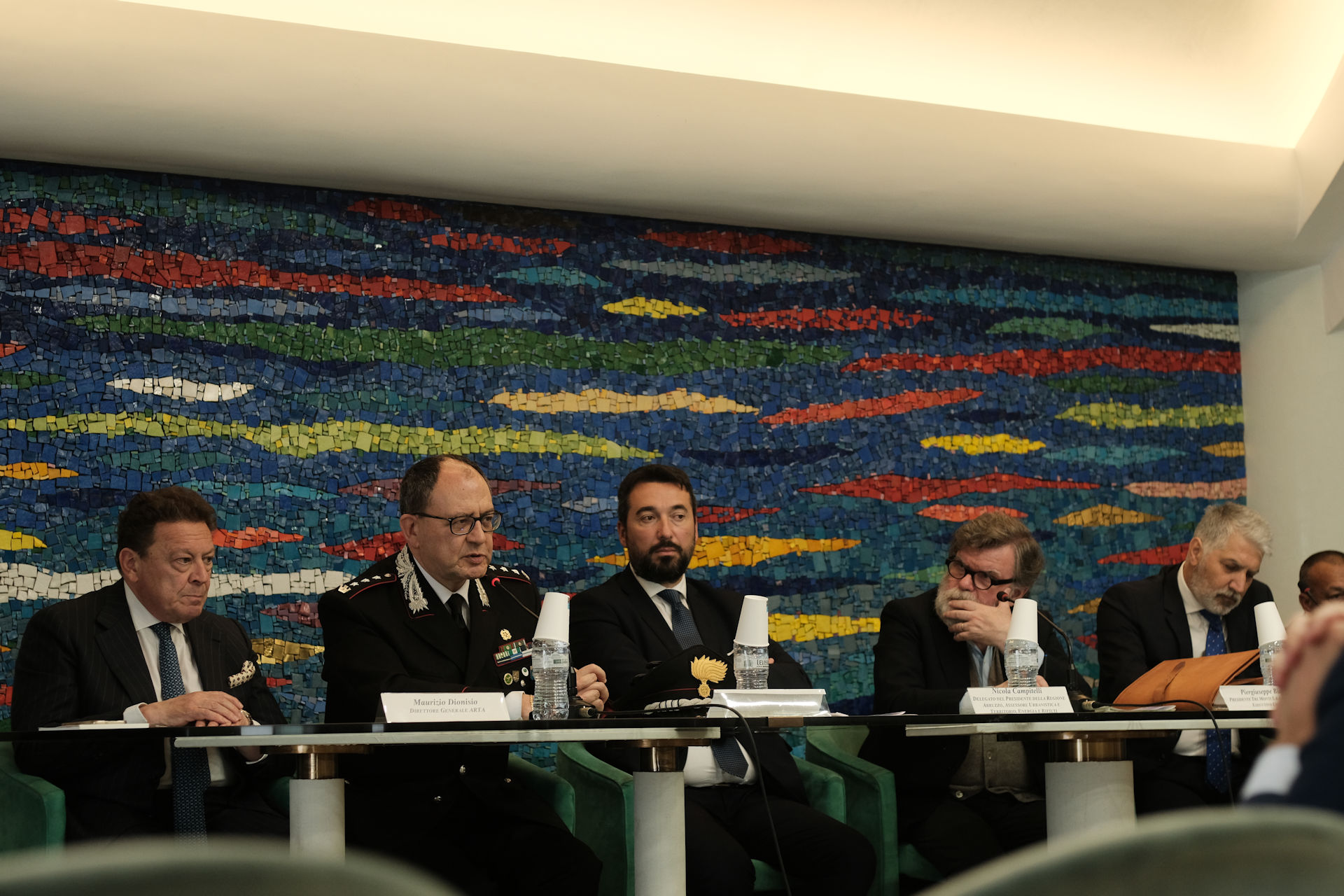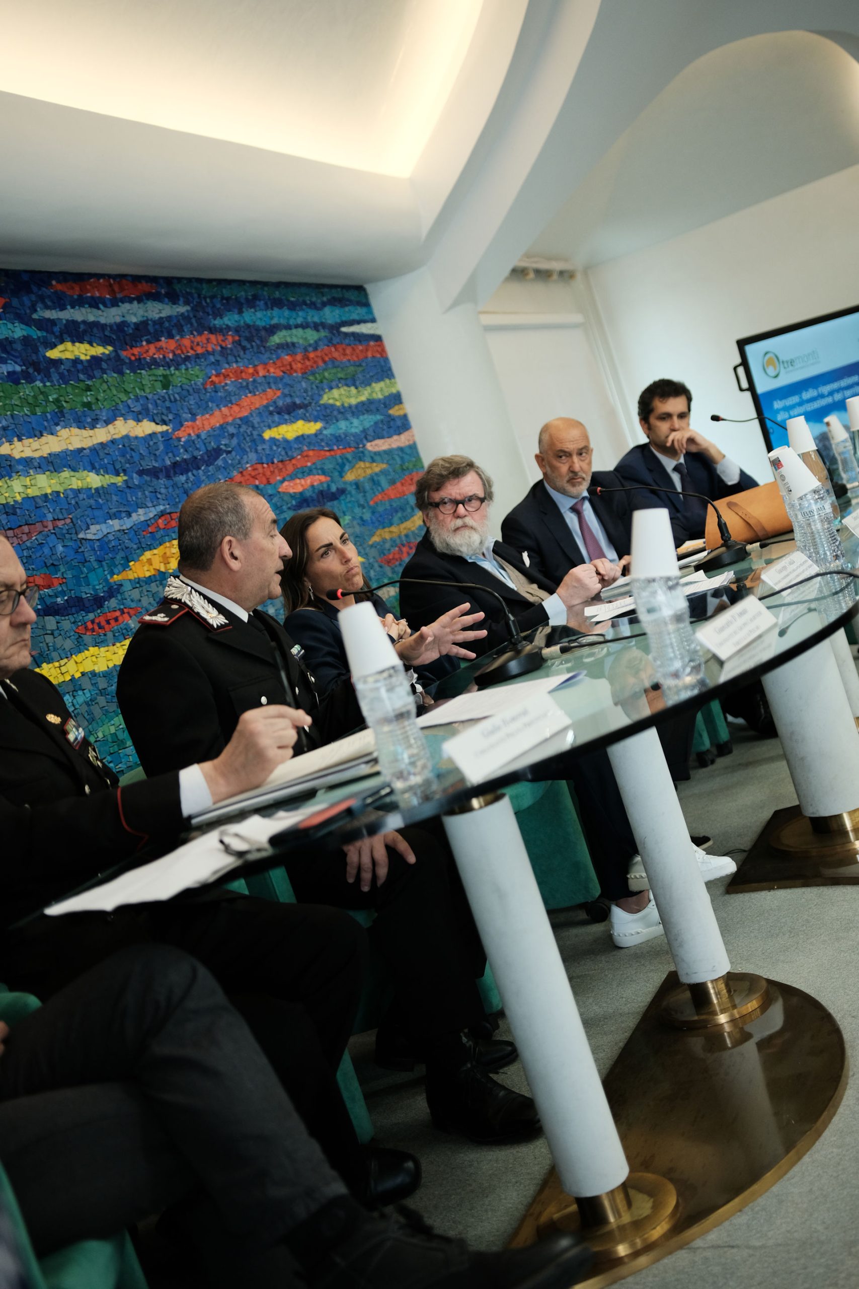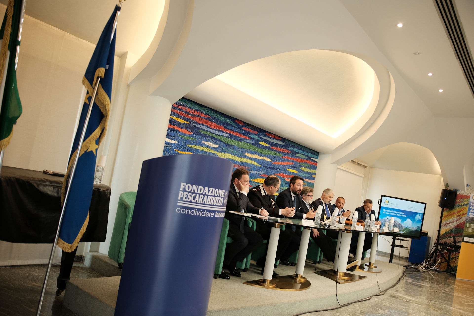 Nicola Mattoscio Presidente Fondazione Pescara; Piergiuseppe Biandrino Presidente Tre Monti S.r.l., Vicepresidente Esecutivo Edison S.p.A.; Nicola Campitelli Delegato del Presidente della Regione Abruzzo, Assessore Urbanistica e Territorio, Energia e Rifiuti; Antonio Romano Delegato del Presidente della Provincia di Pescara. Consigliere della Provincia di Pescara; Salvatore Lagatta Sindaco del Comune di Bussi sul Tirino; Guido Di Bartolomeo Sindaco del Comune di Bolognano; Maurizio Dionisio Direttore Generale ARTA; Giampiero Costantini Comandante Regione Carabinieri Forestale Abruzzo, sono stati protagonisti nei loro interventi.