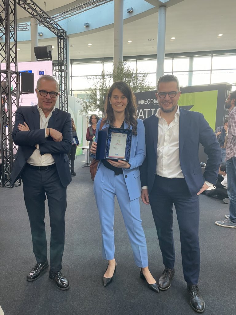 Nell’ambito della Fiera, si è svolta anche la tredicesima edizione del Premio Sviluppo Sostenibile 2023. Sul palco di Ecomondo, Michela Lucian e Vincenzo Cimini hanno ritirato il premio per la società CarboREM, riconosciuta tra le dieci migliori aziende impegnate nel settore della gestione circolare delle acque con il progetto innovativo “HTC for biogas”, basato sulla integrazione della digestione anaerobica dei fanghi e del processo HTC di carbonizzazione delle biomasse umide.