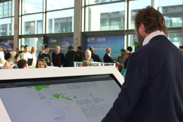 - Pannelli interattivi apposti nello stand tramite i quali, sempre grazie alla medesima tecnologia, era possibile scaricare istantaneamente tutto il materiale informativo del Gruppo direttamente sul proprio device.