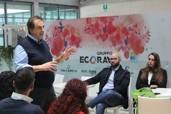 Le manifestazioni fieristiche come Ecomondo permettono di stringere nuove partnership e rapporti commerciali, fondamentali per lo sviluppo futuro delle aziende; informarsi sulle ultime novità del settore, compresi i principi normativi e le opportunità di crescita; condividere idee, progetti, tecnologie e buone pratiche. Per questo motivo la presenza di nostri ambassador è significativa e coinvolge diverse figure, da tutti i reparti aziendali.