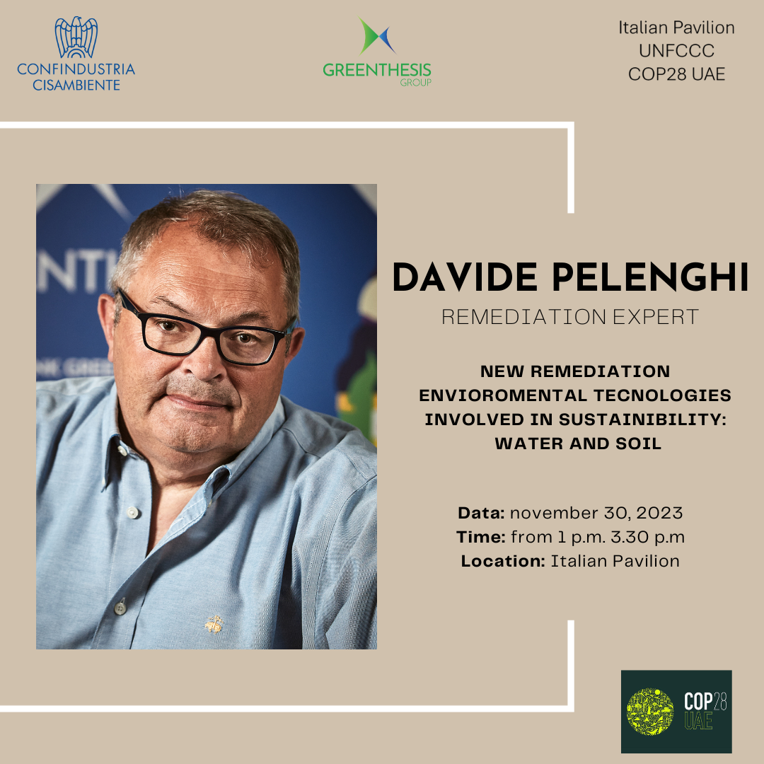 Il Gruppo Greenthesis, è intervenuto sui temi di bonifiche ambientali e tecnologie innovative per la sostenibilità. Nella giornata di apertura dei lavori, giovedì 30 novembre, il Presidente del Gruppo Giovanni Bozzetti ha parlato di “Made in Italy della Sostenibilità e dell’Economia Circolare”.