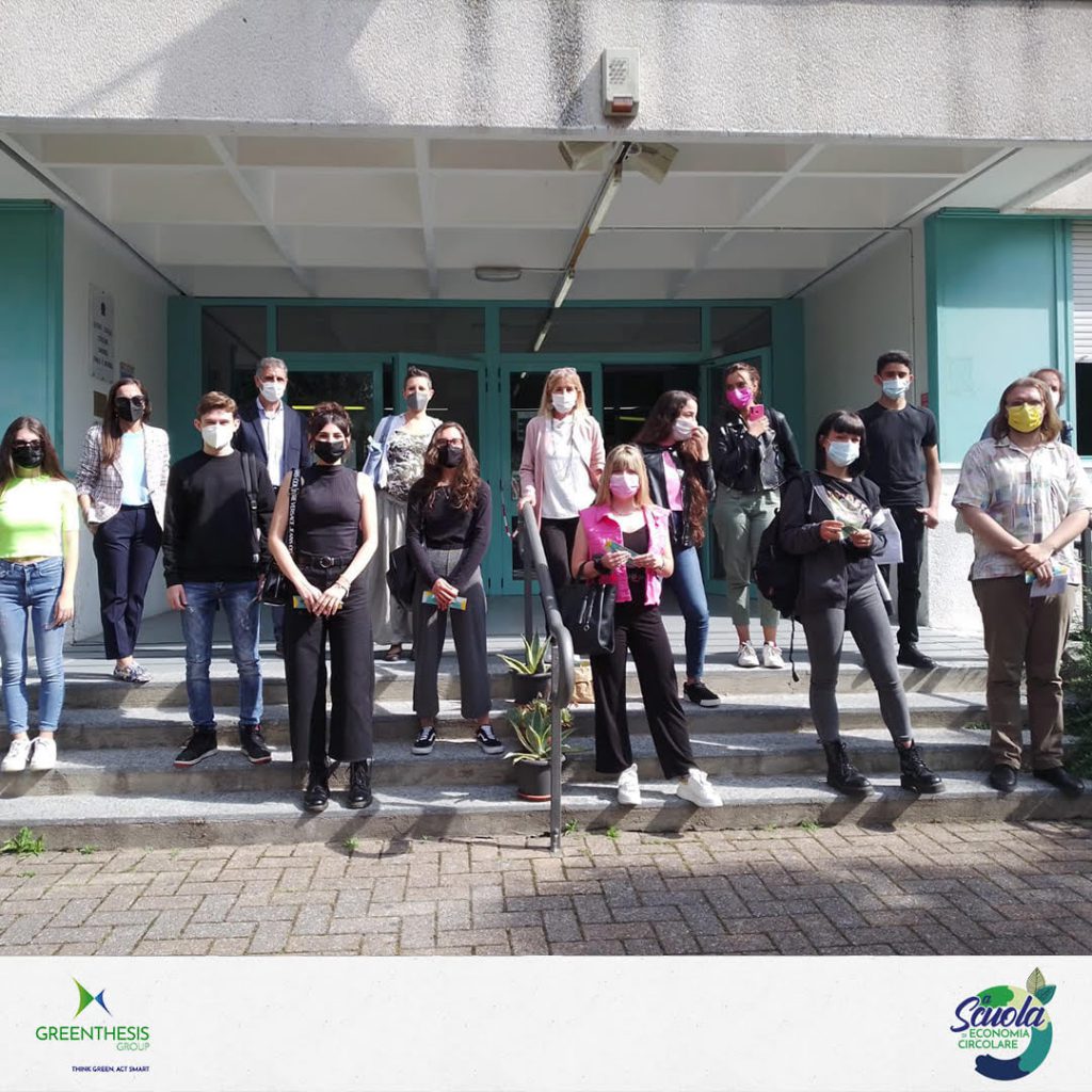 Veniamo, ora, alle classe vincitrici dell’iniziativa scolastica promossa all’interno di “A Scuola di Economia Circolare”, che ha chiesto agli studenti delle scuole partecipanti di presentare idee e proposte di Economia circolare che potessero essere attuate concretamente nel territorio. I progetti vincitori sono stati premiati sia con una somma di 3000€ da poter spendere in materiale digitale per la didattica, sia con la possibilità di organizzare nel mese di giugno, prima della chiusura delle scuole, un incontro nel proprio istituto con i vertici della holding riuscendo così a confrontarsi con i rappresentanti di Greenthesis Group: Simona Grossi (Vicepresidente esecutivo Greenthesis S.p.A.), Giovanni Bozzetti (Presidente Ambienthesis S.p.A.), Marco Sperandio (Presidente GEA, Discarica Tattica Regionale di Sant’Urbano) e Giuseppe Farolfi (Direttore Sostenibilità e CSR Greenthesis S.p.A.).
