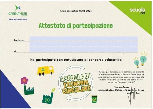 Previsto poi un concorso educativo finale, una sfida grazie alla quale tutte le classi iscritte al percorso “A scuola di economia circolare” potranno mettersi in gioco. L’obiettivo è la creazione di un elaborato creativo individuale, di gruppo o di classe, dedicato ai temi della sostenibilità e dell’economia circolare: il riciclo, il riutilizzo, i comportamenti necessari per vivere nel rispetto del Pianeta e dei suoi abitanti saranno al centro dei contributi dei piccoli partecipanti. creativo. I migliori elaborati saranno ricompensati con un premio in denaro da utilizzare per l’acquisto di materiale didattico; inoltre gli autori vedranno il loro contributo esposto in mostra negli impianti Greenthesis e nell’ambito dell’edizione 2023 della fiera per la transizione ecologica Ecomondo.