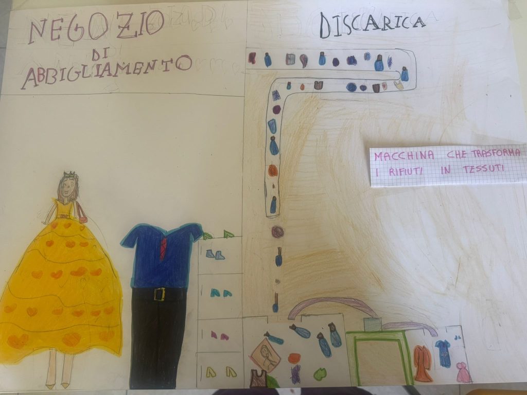Un laboratorio creativo multidisciplinare che ha visto i bambini protagonisti di attività manuali, musicali ed espressive: magliette trasformate in borse, cartelloni a tema ambientale, scrittura creativa e infine la creazione di una canzone originale che invita tutti a fare la propria parte per un mondo più sostenibile.